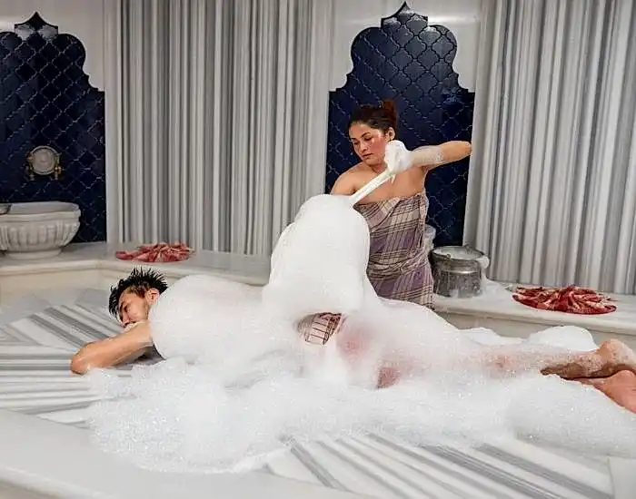 Azerbaycan'da Türk Hamamı deneyimine katılın; kese ve köpük masajıyla temizlenip rahatlayın, kendinizi şımartın!