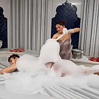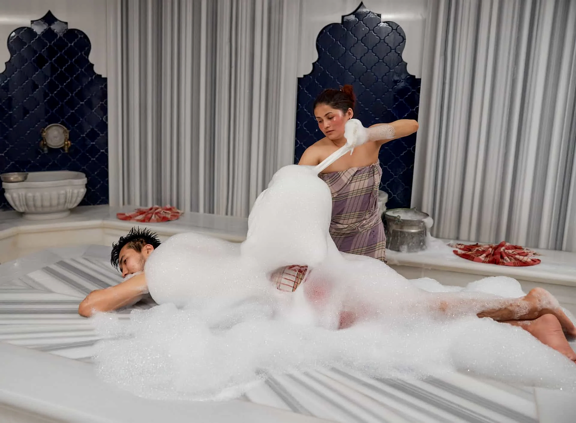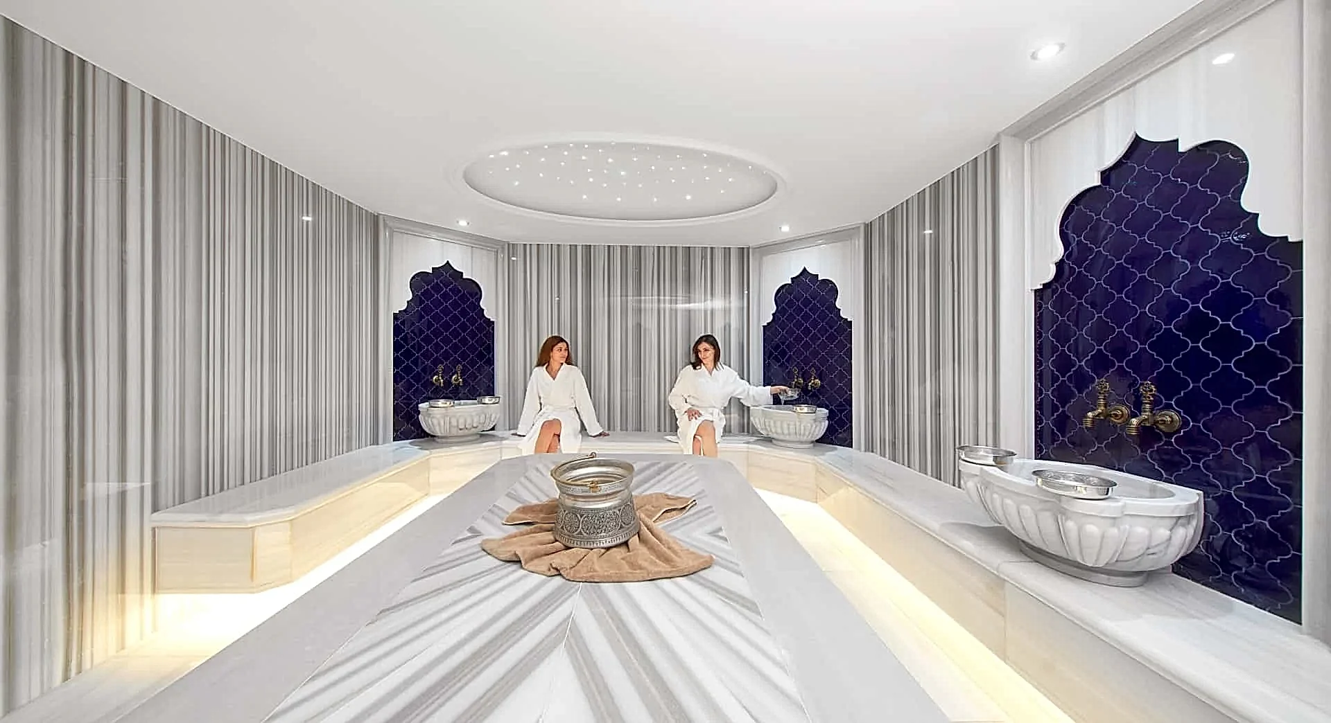 We would like to remind you that our hammam has three section . Women section Men section Couple section Hammam Towel, Soap,Peştemal (the classic cotton hamam wrap) Shampoo, Scrub Mitt and Slippers will be provided for you. For swimming pool we don’t offer swim suit. Swimming pool degree 23,deep 2 meter, length 12. Usually cold water. We would like to remind you that our pool is mix